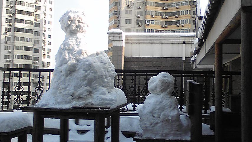 这两天一直有雪,堆了雪人在阳台上,不知道对面有何感想